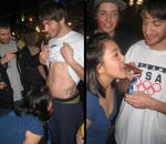 『試合後のパーティーで獲得した銅メダルを男性器に見立て、